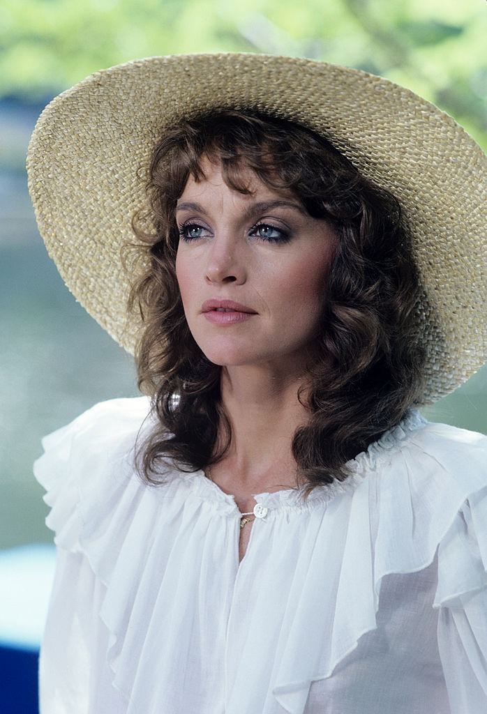 Pamela Sue Martin white dress and hat, 1982. (6/55)