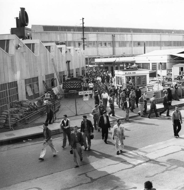 #70 Workers at Lockheed’s Burbank plant gathered on their lunch break.