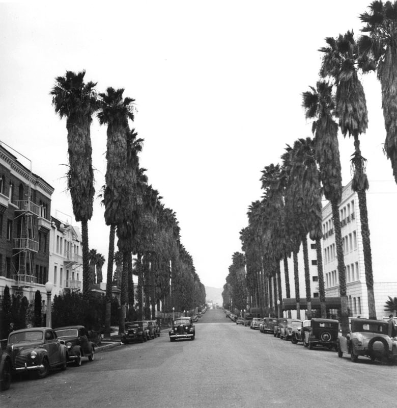 #114 A suburban boulevard in the Wilshire district of Los Angeles, California, 1930.