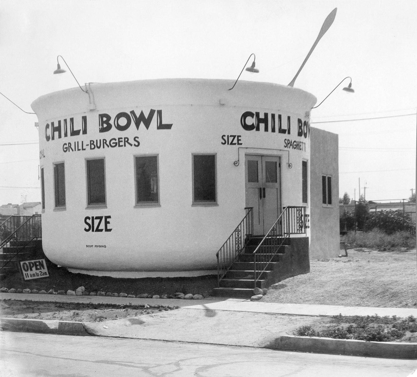 #142 Eatery serving ‘Grill-Burgers’ and other dishes that is shaped like a ‘Chili Bowl’, 1939.