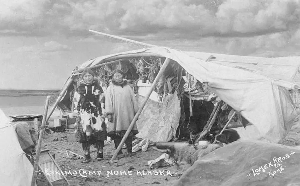 The Lomen family took these photographs of Yupik Eskimo and prospectors during Alaska’s Gold Rush from 1900 to 1930. Eskimo refers to the members of the arctic Alaskan population, including the Inupiaq, Yupik, and Alutiiq. It is now believed that the word “Eskimo” derives from an Ojibwa word that means “to net snowshoes.” The term “Inuit” is used in Canada instead of “Eskimo.” Still, most Alaskans refer to themselves as “Eskimo,” since “Inuit” applies only to the Inupiat of northern Alaska, the Inuit of Canada, and the Kalaallit of Greenland. It is not a word in the Yupik languages of Alaska and Siberia. Today, Eskimo is considered offensive and derogatory in Canada and Greenland, and Inuit have taken its place. In Canada’s Central Arctic, the preferred term is Inuinnait, while in the eastern Canadian Arctic, it is Inuit. There are several local names for the language, including Inuktitut.