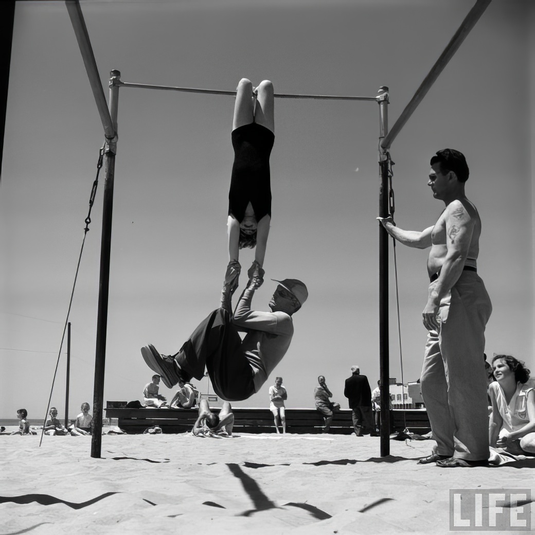 Muscle Beach in the 1950s was a haven for fitness enthusiasts and aspiring bodybuilders. It was a place where people came to show off their strength, learn from each other, and push the limits of human performance. April and her family fit right into this vibrant scene, their impressive feats of strength drawing crowds of onlookers.