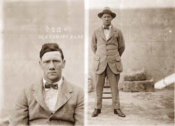 #44 Mug shot of Ernest Joseph Coffey, 2 June 1922, location unknown.