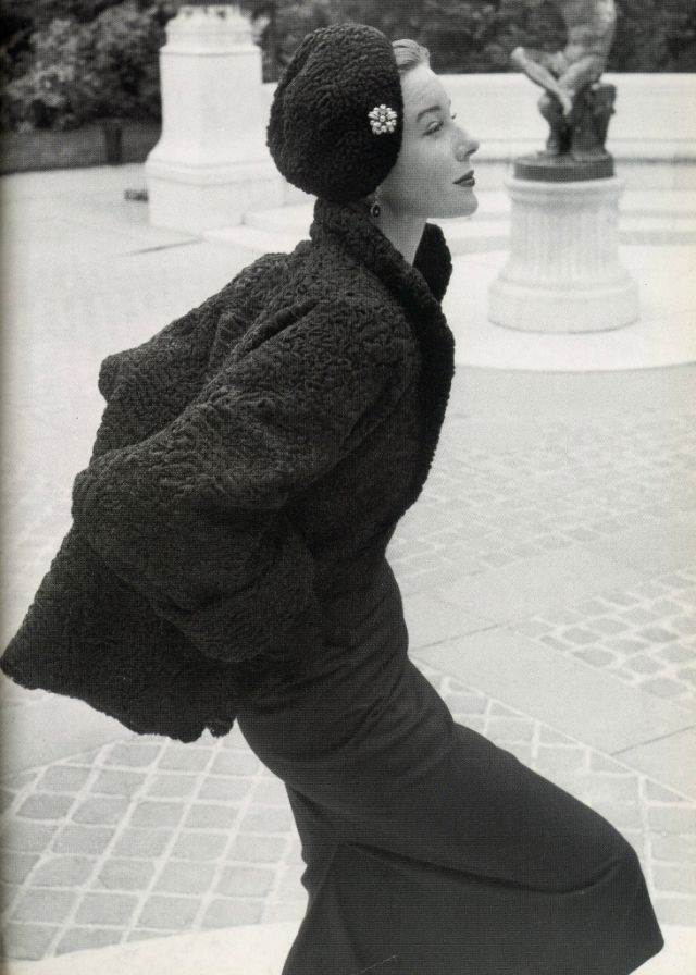 Bettina was born in 1925 as Simone Micheline Bodin in Normandy. Her mother was a schoolteacher who raised her. After the city was liberated from the German occupation in 1944, she moved to Paris. In 1945, she met designer Jacques Costet in hopes of securing a job in fashion design. He decided to hire her as a model since her skills as a mannequin were better than those necessary for a designer. As a young woman in Paris, Bettina hoped to become a designer but instead worked as a muse and model, first with Jacques Fath, who christened her “Bettina” because Fath already had a Simone among his models. Her look represented the wasp-waisted, cigarette-smoking, haute-couture sophisticate of the 1950s. She had a piquant face crowned by a ring of red hair, a tiny hourglass figure with a hand-span waist, and a look that suggested either quizzical surprise or wry amusement. She ruled as the undisputed queen of the Parisian couture.