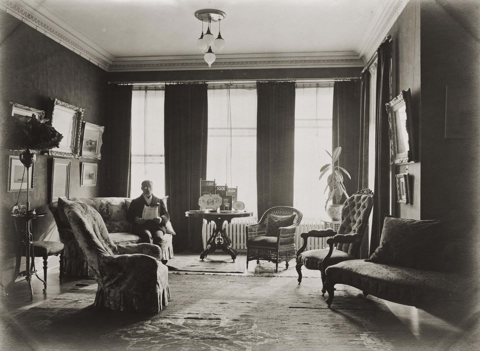 Mr. Daniel Wilkie, in the drawing room of the Wilkie, Daniel R., house, 432 Sherbourne St., w. side, between Carlton & Wellesley Sts., 1908. (57/86)