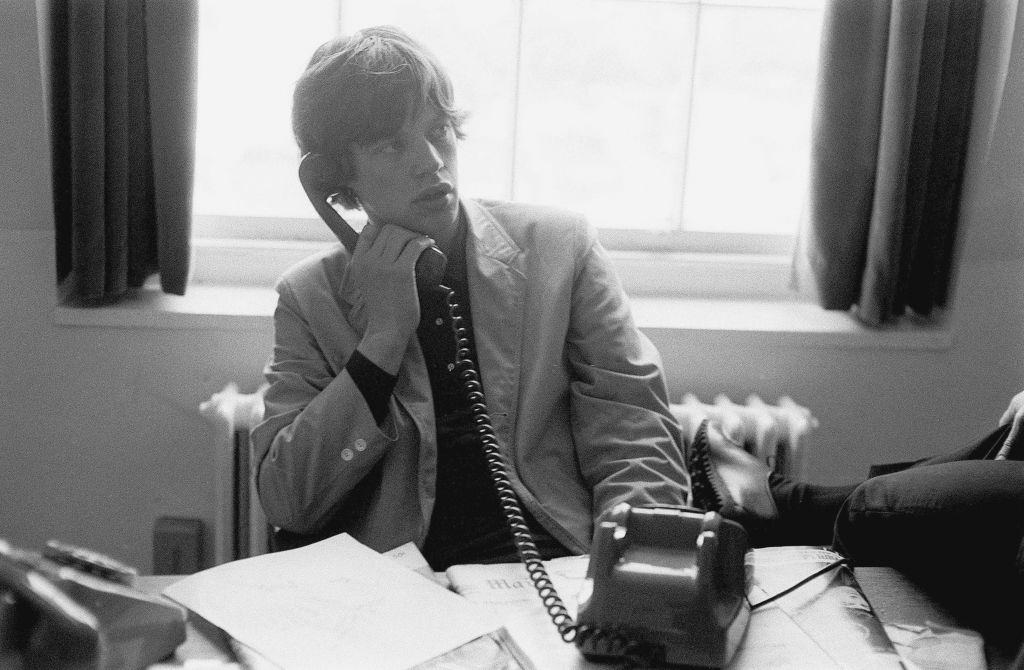 Mick Jagger takes a telephone call in an office, London, 1964. (38/56)
