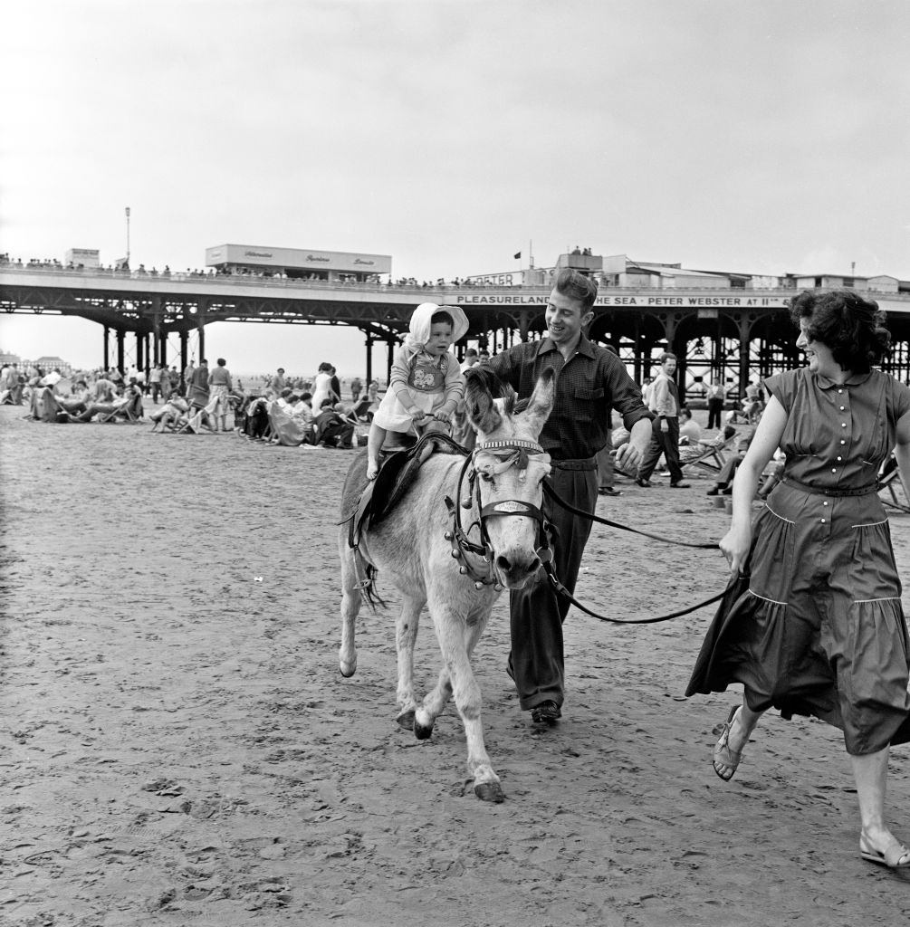 These beautiful vintage photos show Blackpool in the 1950s when it was a famous tourist spot. Ice creams, donkey rides, saucy postcards, hats, and people are enjoying their time.