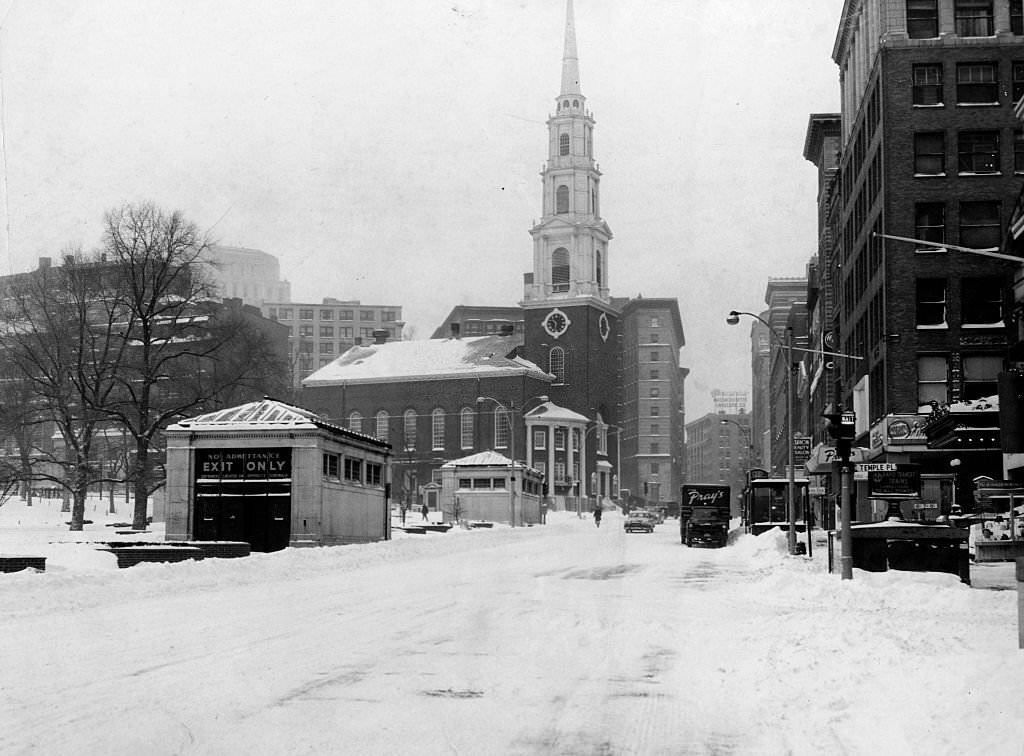 #53 Tremont Street is covered in snow after a near-record 12.2 inches covered Boston on Jan. 19, 1961.
