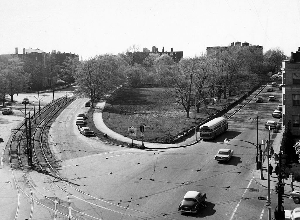 #74 The triangular-shaped parcel of Park Department land at Commonwealth and Chestnut Hill Avenues in Boston, seen here on May 2, 1960, will be sold to a private firm for the construction of a 17-story, $3 million building.