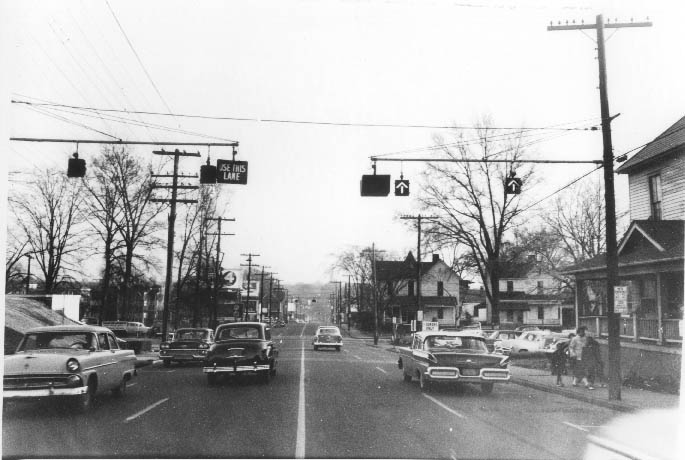 #3 Looking east from Queens Road toward the intersection with Providence Road, 1950