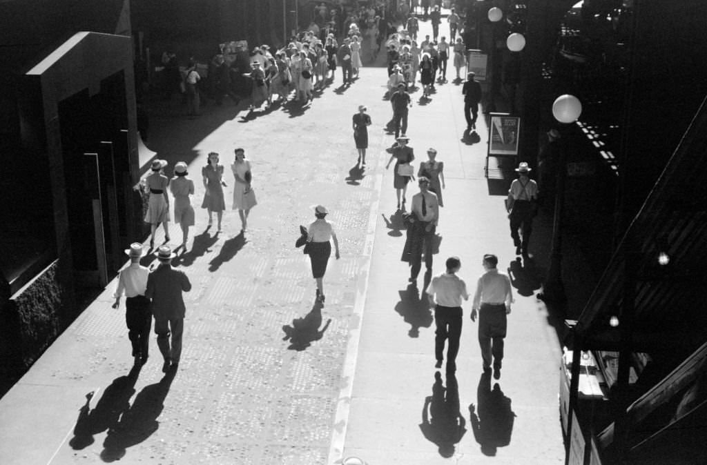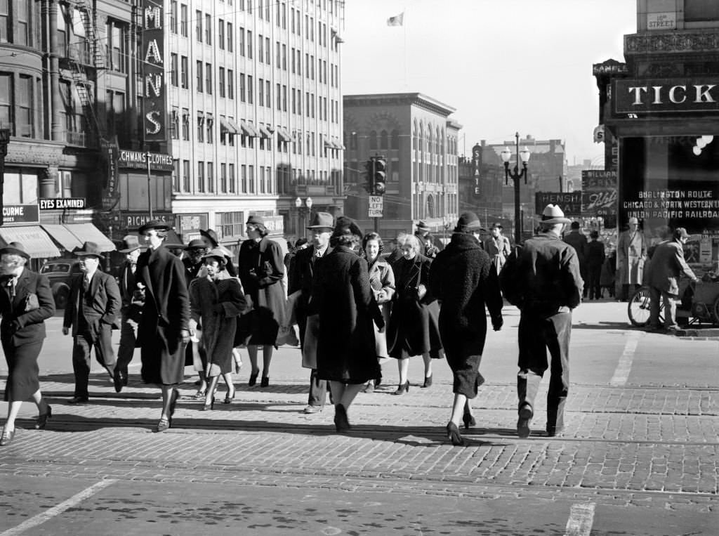 The still-green photographer here captures images of city life in Chicago in his 1941 photographs, which are sometimes distant and unobtrusive, but also sharply observant and quietly funny.
