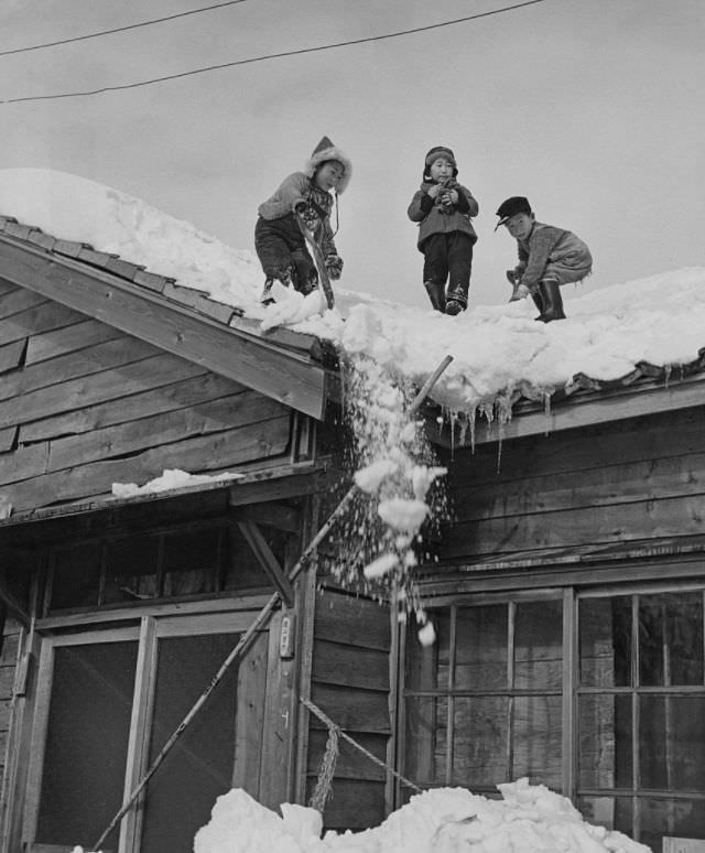 Here is a collection of beautiful black and white photographs showing children having fun in the snow.