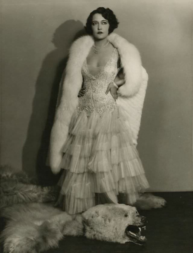 In these images, we see Sebastian draped in stylish, often daring attire, typical of the Roaring Twenties fashion. Flapper dresses, cloche hats, fur stoles – every photo is a testament to the bold and adventurous fashion of the time. Yet, it wasn’t just the clothes that caught the eye; it was Sebastian’s confident, smoldering gaze and poised elegance that made each photograph a masterpiece.