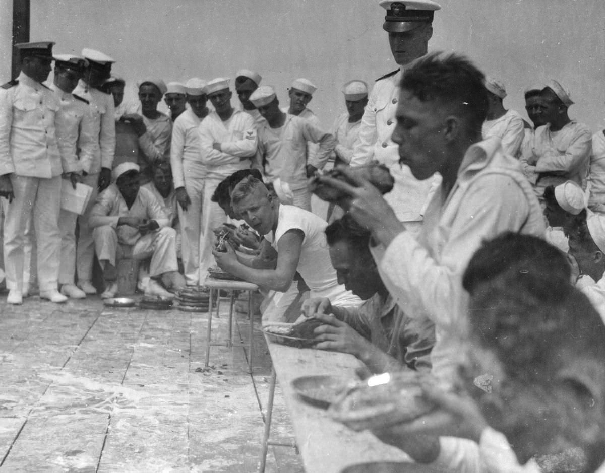 Since electricity was still relatively rare, many local fairs throughout the U.S began to feature eating contests as a way to entertain people. Many of these contests focused on local crops such as corn, watermelon, or apples; eventually, pies began to reign supreme as the competitive eating food of choice. Here below are some historical photos of different eating contests.