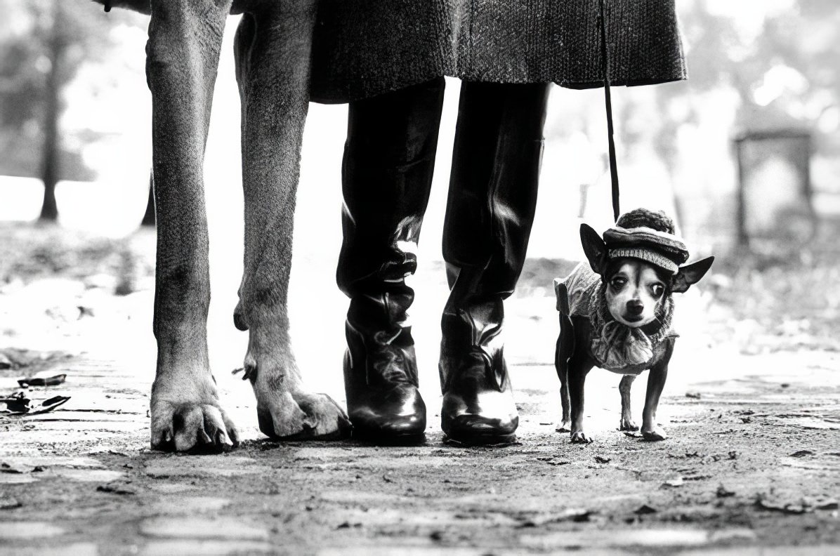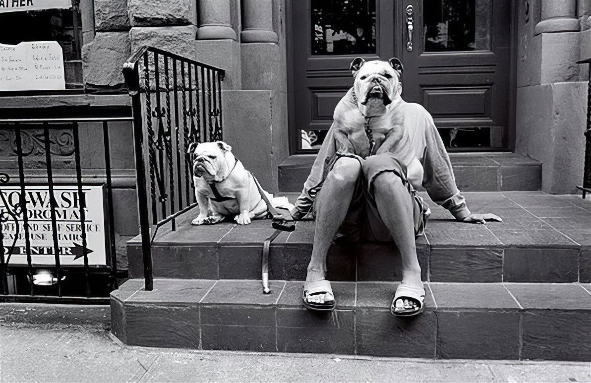 Another funny shot is “New York City, 1974”. A tiny Chihuahua struts confidently beside a woman’s legs, perfectly mirroring her high heels and confident stride. It’s as if the dog thinks, “I’m just as fashionable and important as you!”
