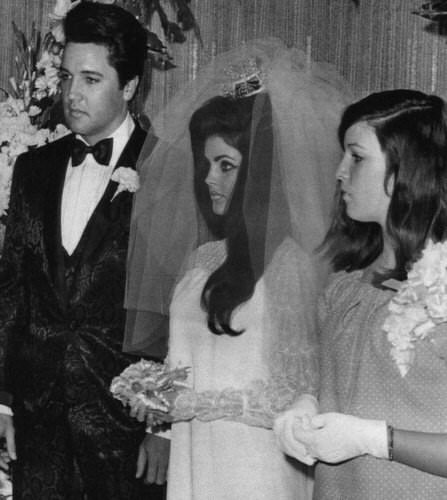 After years of dating, Elvis proposed to Priscilla in 1966, and they tied the knot on May 1, 1967, in a lavish ceremony at the Aladdin Hotel in Las Vegas. The wedding was a spectacle, attended by a small group of close friends and family. Priscilla wore a white gown she designed herself, and Elvis sported a black tuxedo with a ruffled shirt. The ceremony was brief but heartfelt, followed by a champagne breakfast reception.