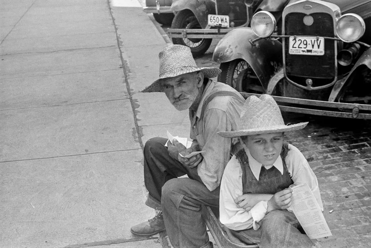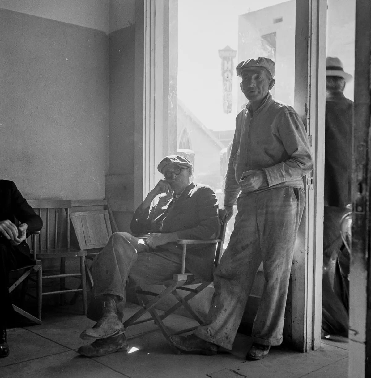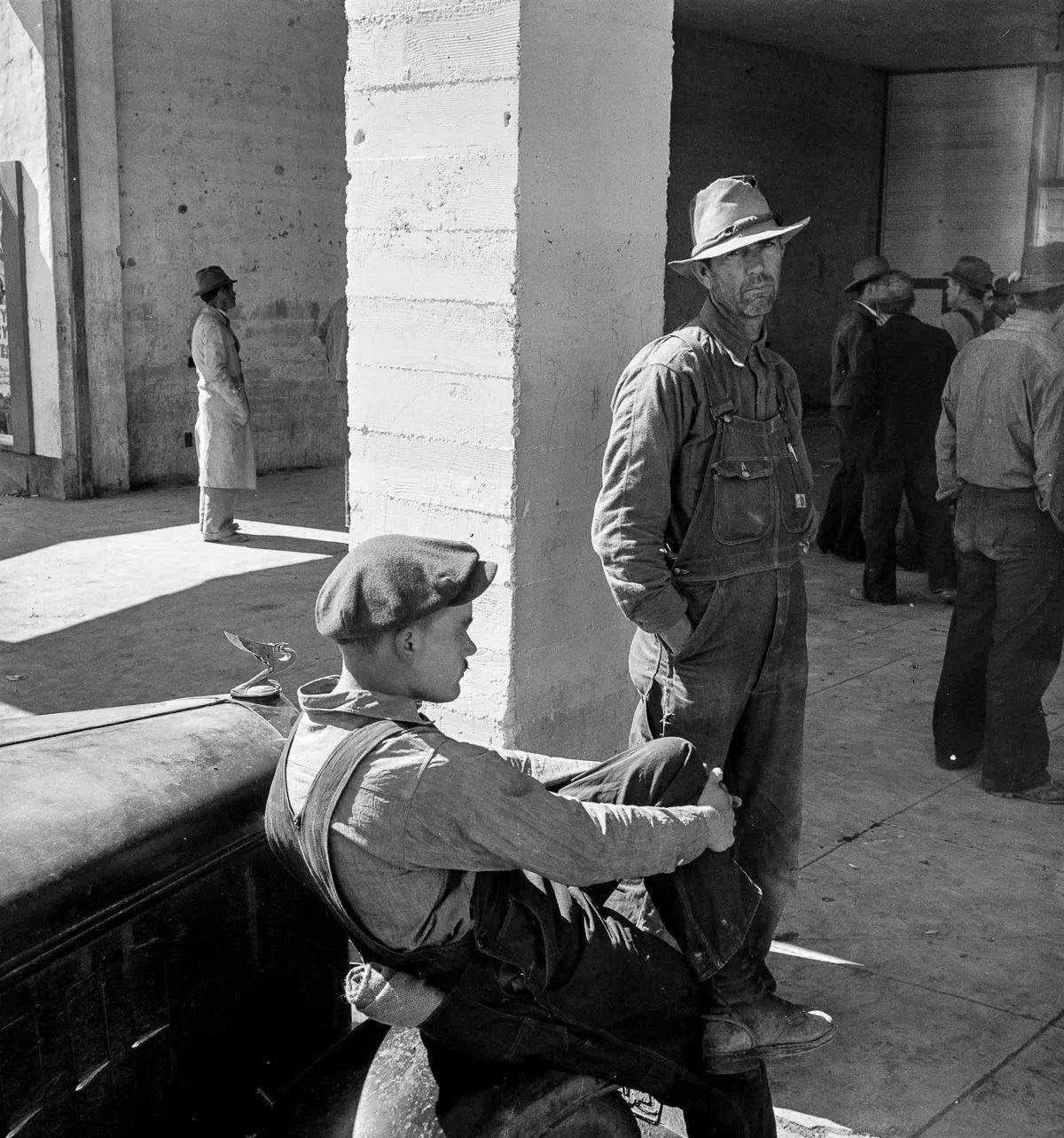The historical photos depict agricultural labourers’ acute anxiety and stasis as they wait in line for the emergency aids that will keep them and their families alive for another few days.