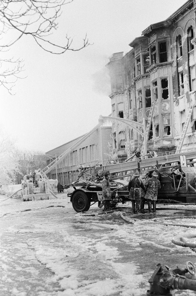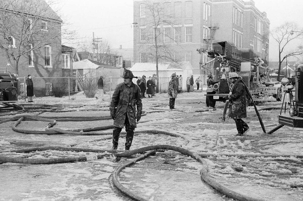 Here below are some historical photos that show how firefighters combat fire during extreme weather.