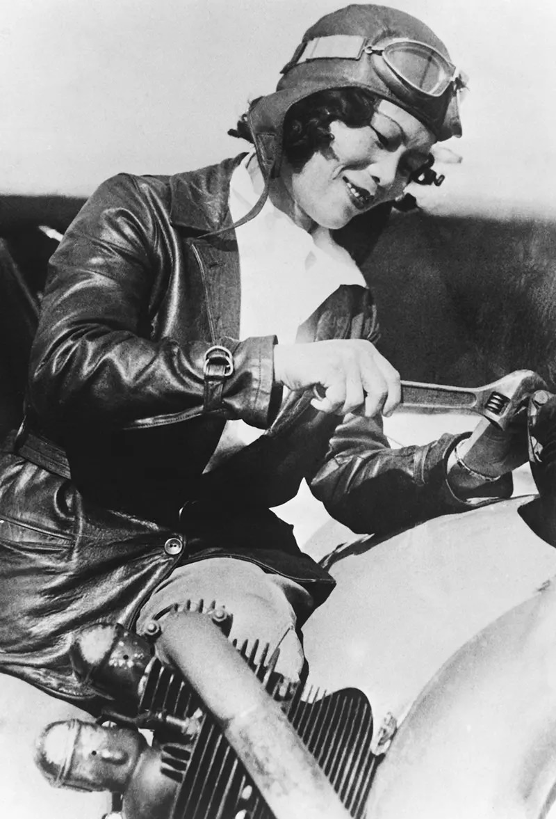 #20 Amy Johnson CBE, (1903-1941), a pioneering English aviatrix, seen here adjusting the engine of a de Havilland DH60 Moth.