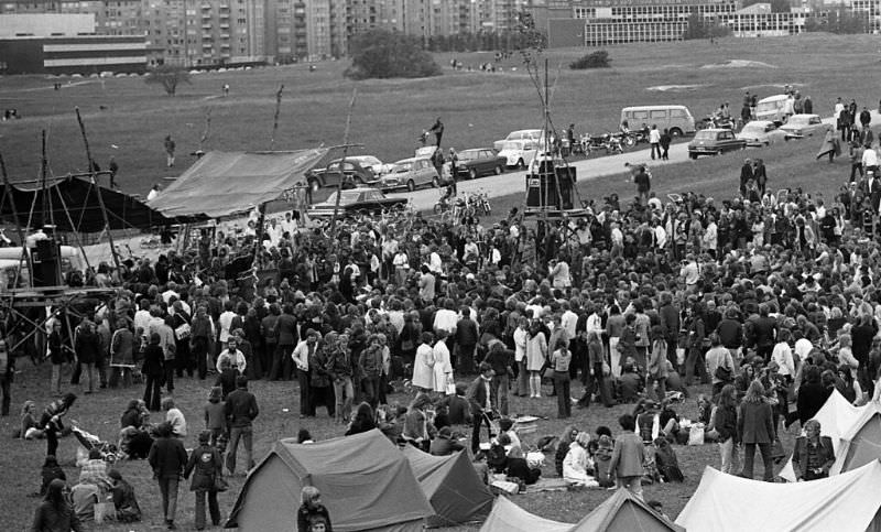 On 20 and 23 August that same year, the second party at Gärdet was held, and many of the bands from the first party did not participate this time, such as Turid, Fläsket brinner, Samla Mammas Manna, Södra Bergens Balalaikor, NJA-group (later Fria Pro), and The Basics of European Dissatisfaction.