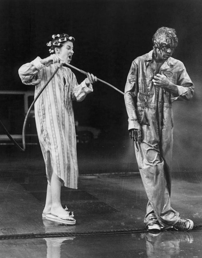 The opening beach scene of the film was shot at Malibu’s Leo Carrillo State Beach, making explicit reference to From Here to Eternity. The exterior Rydell scenes, including the front parking lot, the auto shop, and the “Summer Nights” bleachers number. Huntington Park High School provided the backdrop for the Rydell interiors, including the high school dance. The sleepover was filmed in an East Hollywood private house. The scenes involving Frosty Palace and the musical numbers “Greased Lightning” and “Beauty School Dropout” were filmed at the Paramount Pictures studio lot. Drive-in movie scenes were filmed at the Burbank Pickwick Drive-In. Many films have been filmed along the Los Angeles River between the First and Seventh Street Bridges, where the race was filmed. The final scene where the carnival took place used John Marshall High School. Due to budgetary constraints, the Los Angeles Hazard Park was also used for a short scene.