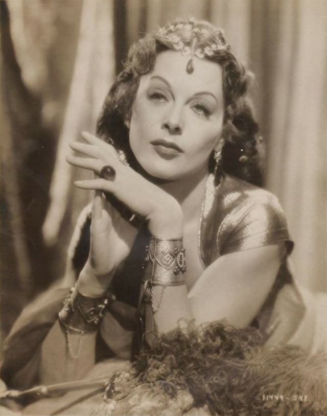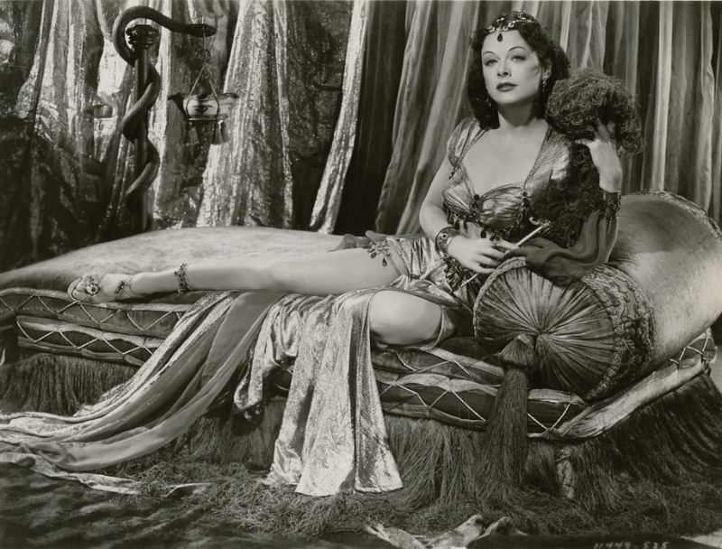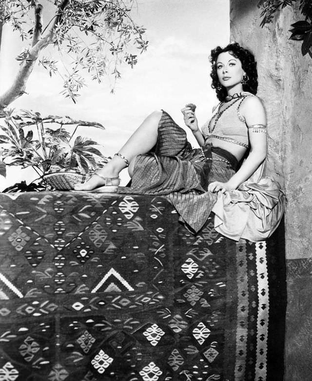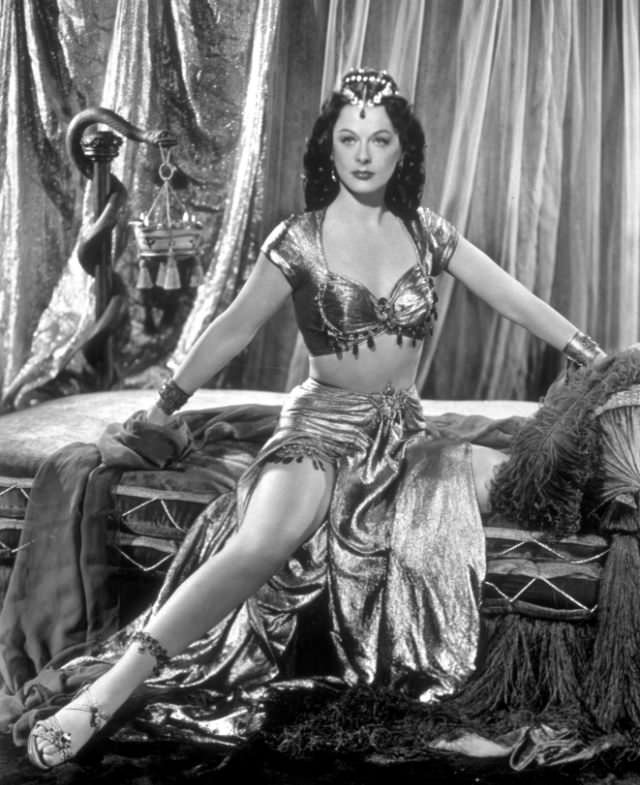 In the film, Hedy Lamarr played the role of the seductive temptress and conniving Courtesan. Her role was limited in the movie, but she portrayed a femme fatale character capable of bringing down a mighty warrior. She set the screen on fire as the sensual and wicked Delilah, who played with and dragged every man on the screen and in the audience in her wake. She wore gorgeous figure-revealing costumes that no woman in a million could pull.