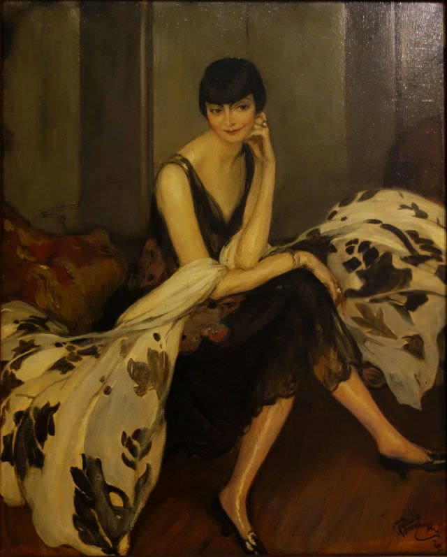 Domergue’s paintings are instantly recognizable for their portrayal of slender, graceful women. These figures, often set against the backdrop of high society, are marked by their elongated necks and stylized forms. This was not merely an artistic choice but a signature element that defined Domergue’s aesthetic. The women in his paintings exude an air of refined sophistication, embodying the idealized vision of femininity prevalent in the early 20th century.