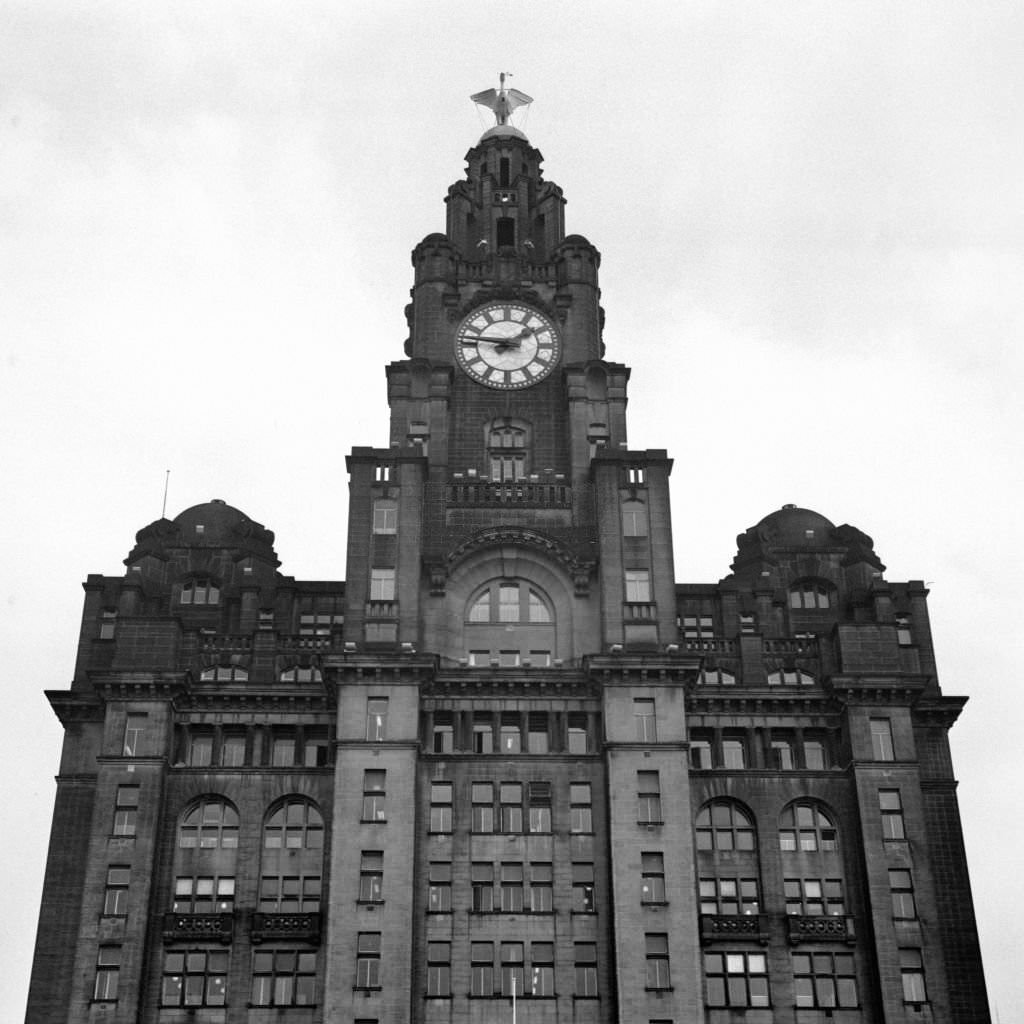 #30 Royal Liver Building in Liverpool, left, with the Mersey ferry on its way along the River Mersey.