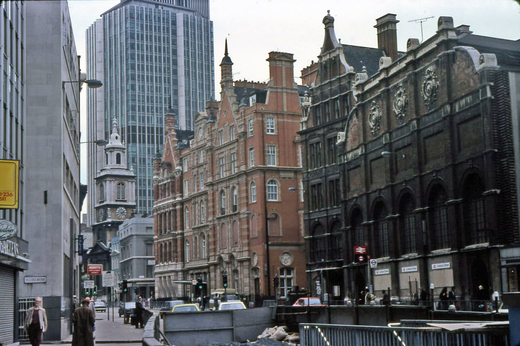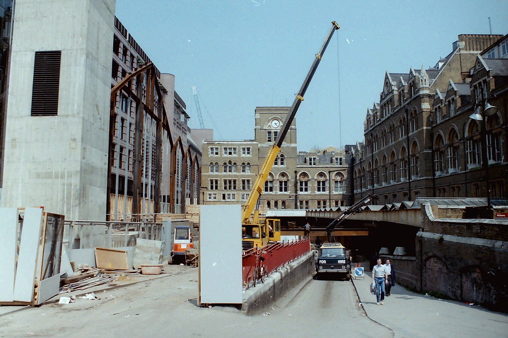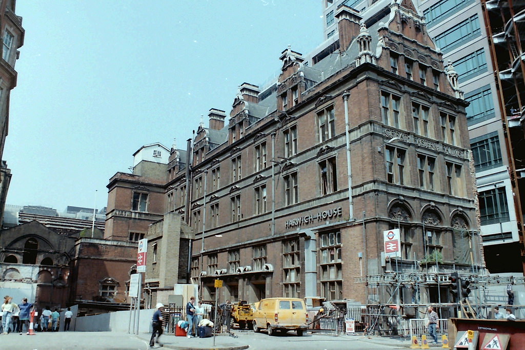 This station was constructed in 1874 to serve east London, Essex, and East Anglia for the Great Eastern Railway. By November 1875, it was connected to the Metropolitan Railway, the first underground railway in the world. The station roof was designed and built by the Fairburn Engineering Company, which also supplied the roof for the Royal Albert Hall in London. The station was redeveloped in the mid-1980s. In 1986, Broad Street station was demolished, and a new complex of shops, bars, restaurants, and offices called the Broadgate Centre was built.