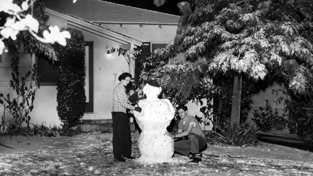 On Jan. 10, 1949, in the middle of the worst housing shortage in Los Angeles history, more than half an inch of snow covered the Civic Center. The San Fernando Valley was pelted with the unfamiliar white stuff for three days, accumulating almost a foot. The Rose Bowl was transformed into “a dishpan full of milk,” by one account. An Alhambra hardware store put up a sign that said, “Snow Plows for Rent — Hurry!” A snowman appeared in Eagle Rock, wearing a sombrero, and the city of Reno, Nev., sent L.A. a snow shovel.