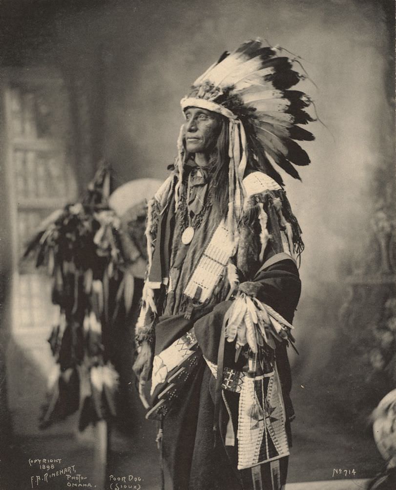 Inside the studio, Rinehart and Muhr carefully posed individuals for portraits. Most pictures focused on the person’s head and shoulders. The subjects often wore traditional clothing, including items like feather headdresses, beaded garments, and specific jewelry representing their tribe and status. These studio sessions resulted in hundreds of photographs.