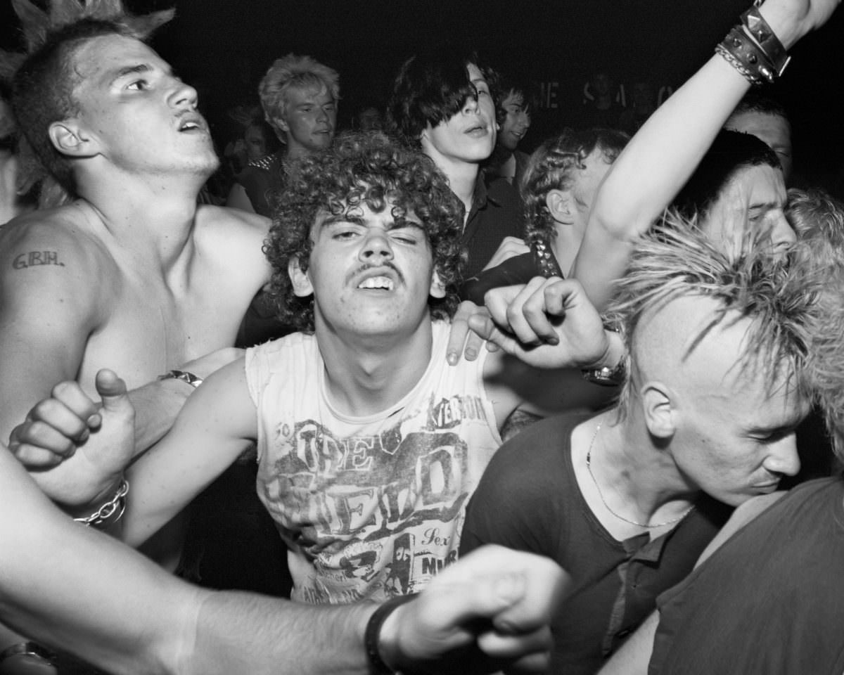 We see young men and women with brightly colored hair, ripped clothing, and defiant expressions. They’re adorned with piercings and tattoos, symbols of individuality and rebellion against the norms of a society that seemed to have left them behind. The images capture the energy of the mosh pit, a swirling mass of bodies caught in the throes of the music. It’s a scene of chaos and catharsis, a release from the daily struggles of life in a city grappling with economic decline.