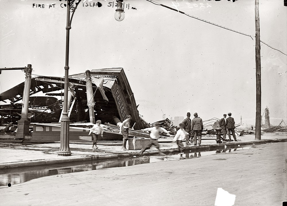 Coney island was a hot place on a hot July day, and all the men wore suits and hats, and all the women wore full gowns. Wow!