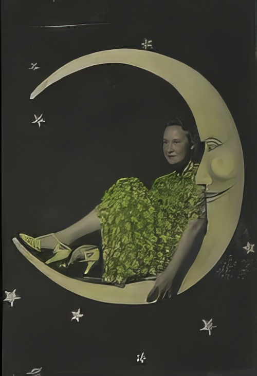 The Paper Moon setup let people pretend they were visiting the moon long before space travel existed. Some stood next to it, while others sat or leaned against it. A few even posed as if they were walking on its surface. These poses added a touch of humor and whimsy to the photos. They gave ordinary people a chance to be part of something extraordinary.