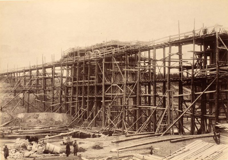 These historical photos show the construction of the Pskov-Riga (Russian Empire) Railway in the late 19th century. Photographers Hugo Hoffers and Peter Sohnwald captured these photographs, and they both also worked in Tartu and Riga.