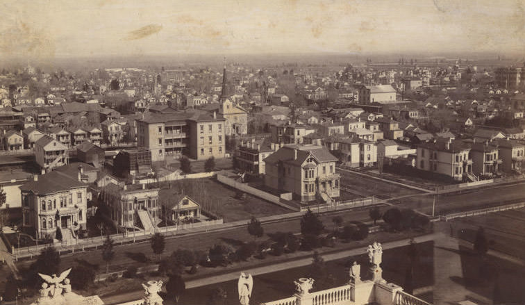 #130 View from California State Capitol building identified on the original envelope as being a viw looking north east, 1880