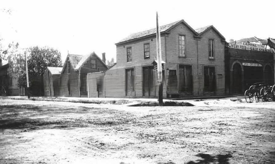 #57 Street scene; one building with sign “Capital Livery, 1883
