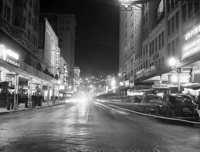 #151 Houston looking east from St. Mary’s Street intersection during city blackout, 1941