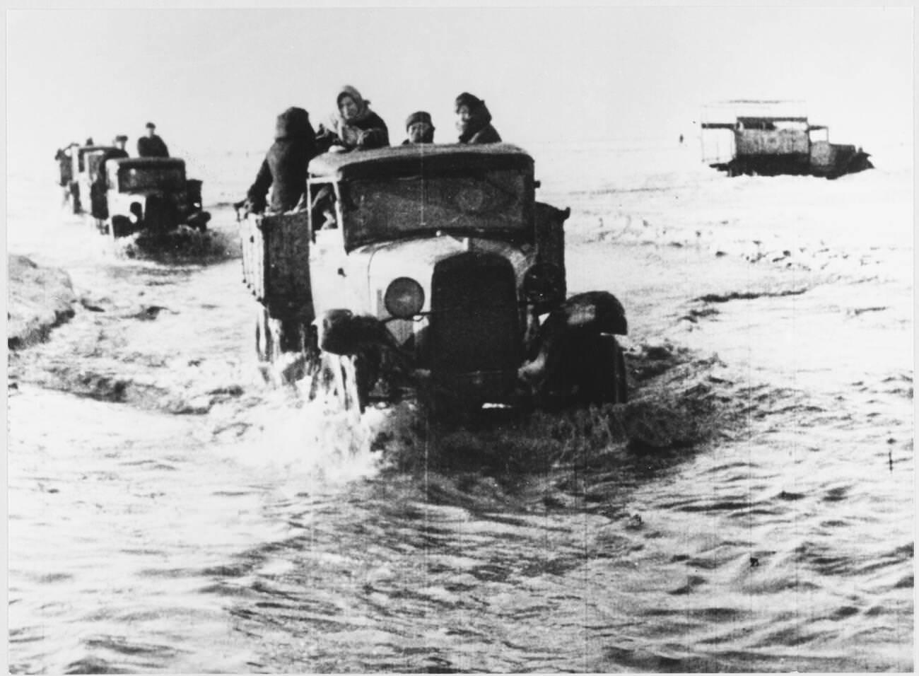 In response to the dire situation, the Soviets established the Road of Life across the frozen Lake Ladoga. This ice road became a crucial supply line, over which food and fuel were transported into the city, and civilians were evacuated. Despite constant bombing and shelling by German forces, this route remained operational and was critical for the survival of Leningrad’s population.