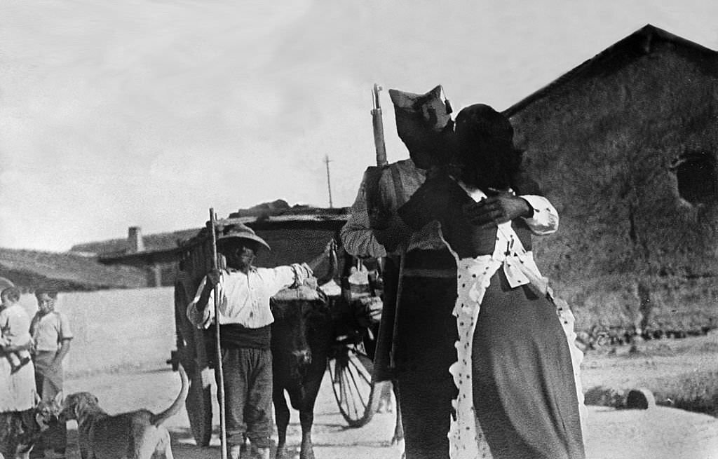 #20 Nationalist troops capture Republican soldiers. In 1936, at the Battle of Somosierra, in the heights of the pass between Carlist and Falangist units and Republican troops.