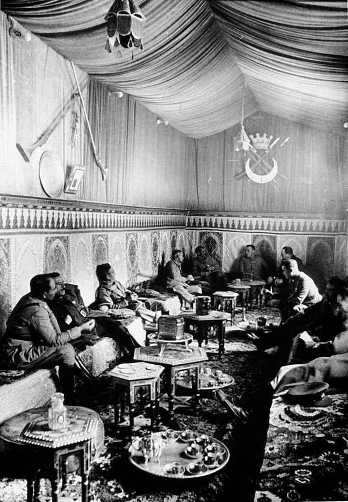 #31 General Francisco Franco 1892-1975 stands with his senior officers after arriving in Spain to take part in the Coup against the Republican Government 1936.