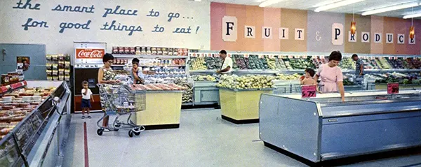 Before the 1960s, people often went to smaller grocery stores or local markets. These stores usually had a limited selection of products, and customers would often rely on store clerks to help them find what they needed. But by the early ’60s, things started to change. Supermarkets began to grow in size and in the variety of goods they offered. They were designed so that customers could walk through wide aisles, pushing shopping carts, and picking out their groceries themselves.