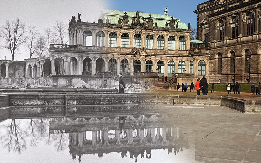 World War II was of the disastrous and transformative events of the 20th century. It marked the end of the British Empire as a world power and the confirmation of the United States as The Superpower. It is estimated that over 70 million people, including military and civilians, have died in WWII. Large amounts of infrastructure were destroyed through six-year of ground battles and airstrikes. Families were separated for long periods of time, and many children lost their families. Some talented photographers combined historic photographs of WWII destruction, beginning and ending with the modern-day. They combined these photos with the same location in a single frame with the same angle. Check out these ghostly combinations of London, Berlin, Kaliningrad, and some other locations below. Also, check photos of Berlin during WWII and now.