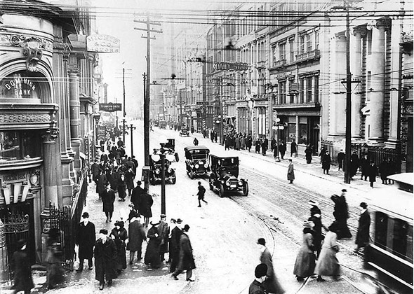 #4 April 9 is Vimy Ridge Day. Six months after that battle, in October 1917, this photograph captured recuperating veterans gathered on the southwest corner of Yonge and College Street, referred to as Shrapnel Corners.