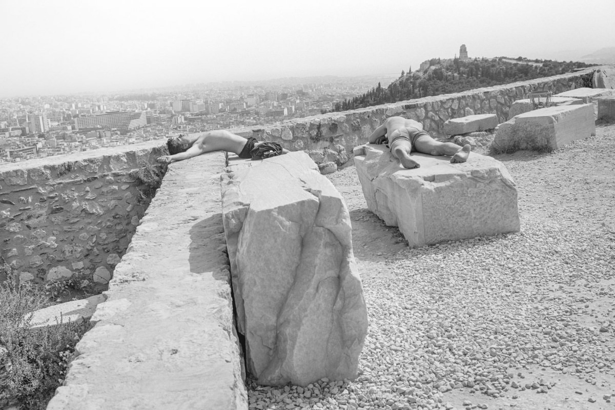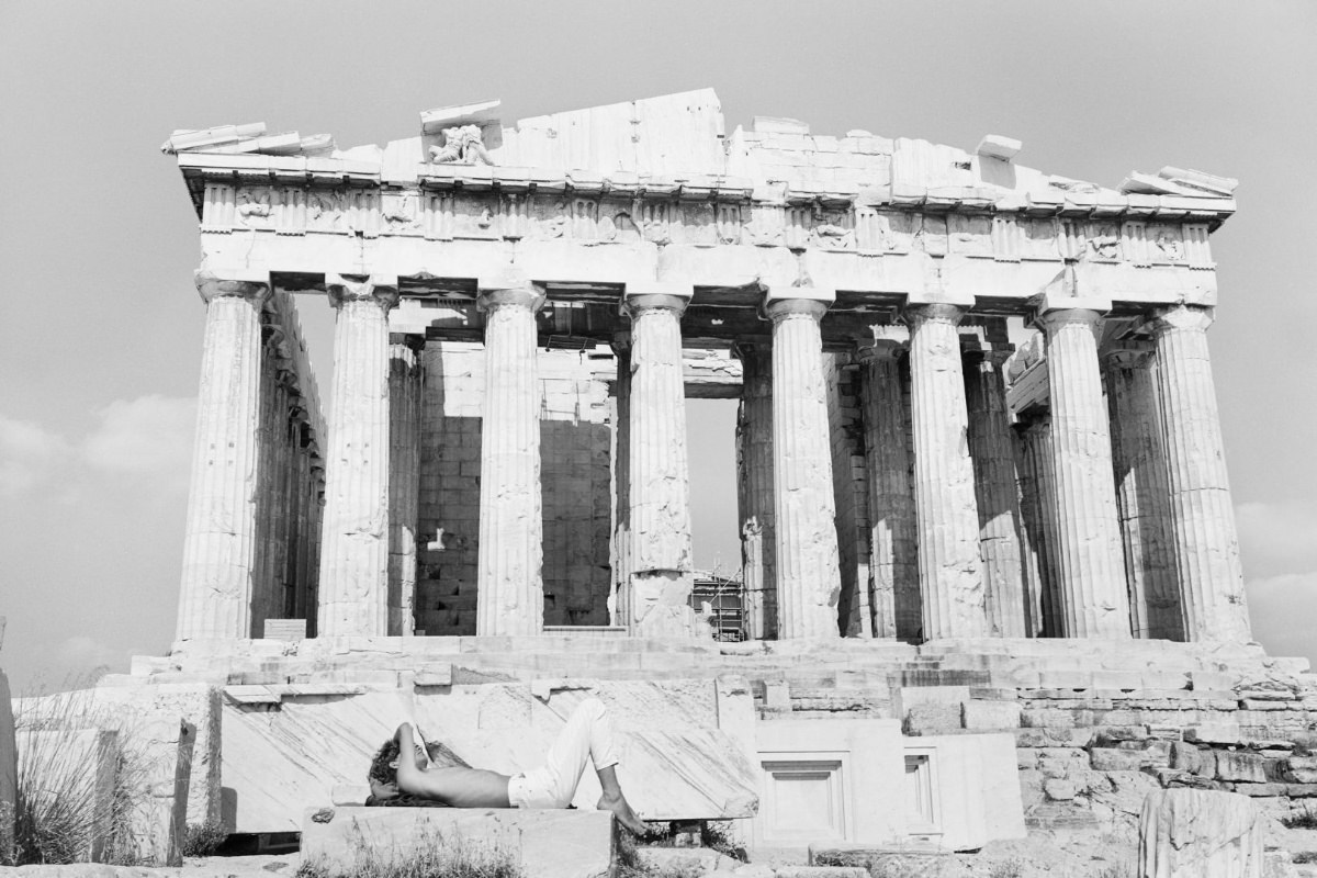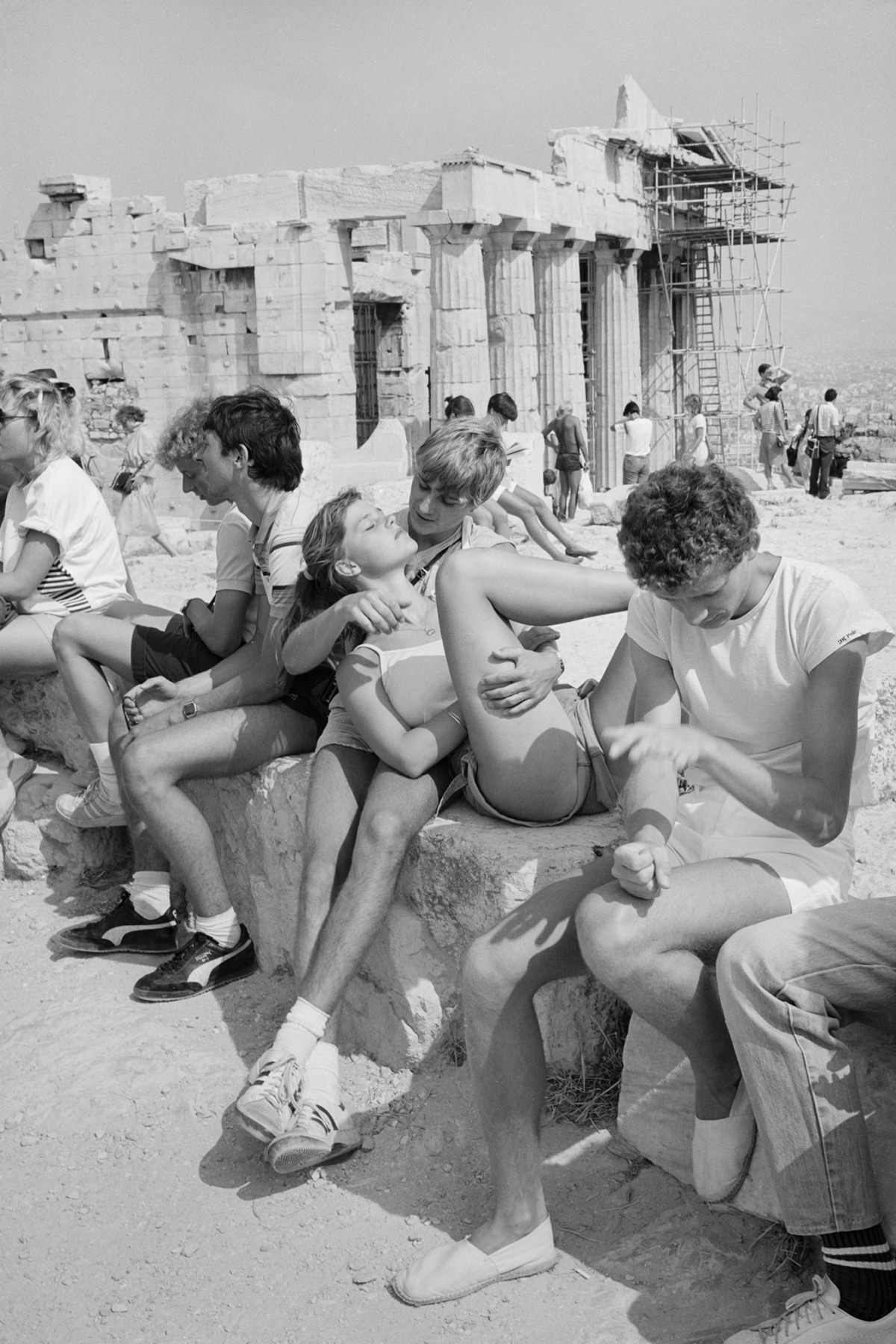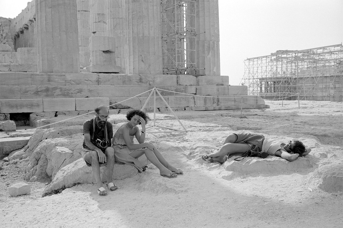 During the summers of 1983–84, American photographer Tod Papageorge shot photographs of people who walked up to the Acropolis in Athens to see what all the fuss was about and prove they had been there. His work blends ancient with modern, appearing lost in time.