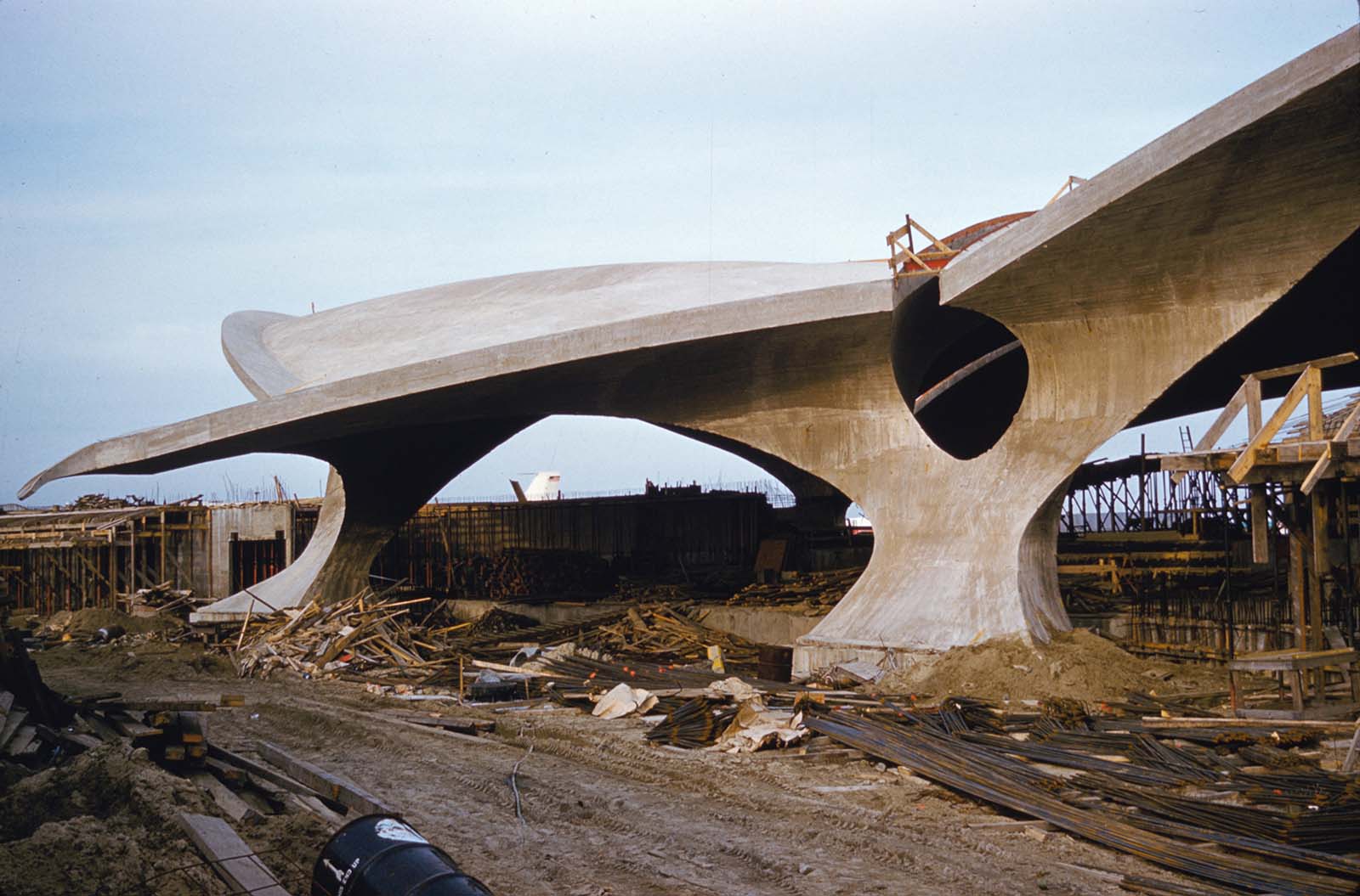 The TWA terminal at JFK International Airport, designed by Eero Saarinen, is an abstract symbol of flight. Saarinen’s terminal raised passengers’ spirits and demonstrated that concrete could be aesthetically pleasing. One of several stand-alone terminals made up the original Idlewild Airport (now JFK International) in Queens, a borough of New York City. Designed by Eero Saarinen and Associates, the TWA Terminal culminated Saarinen’s search for creative expression through reinforced concrete constructions. The architect died during emergency neurosurgery in 1961, before the terminal building was completed.