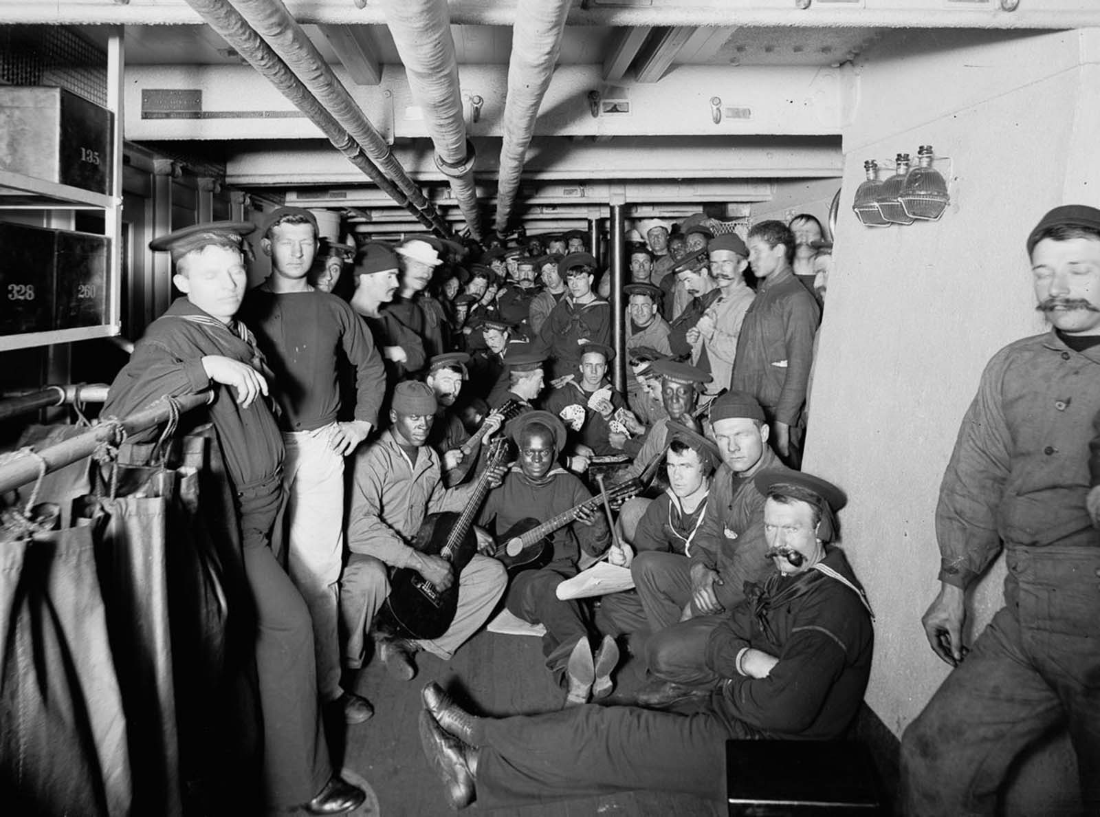 These beautiful photographs, taken by Detroit Photographic Company in 1896, give a glimpse into the inside of the warship, its armament and features, and the everyday life of sailors on board.
