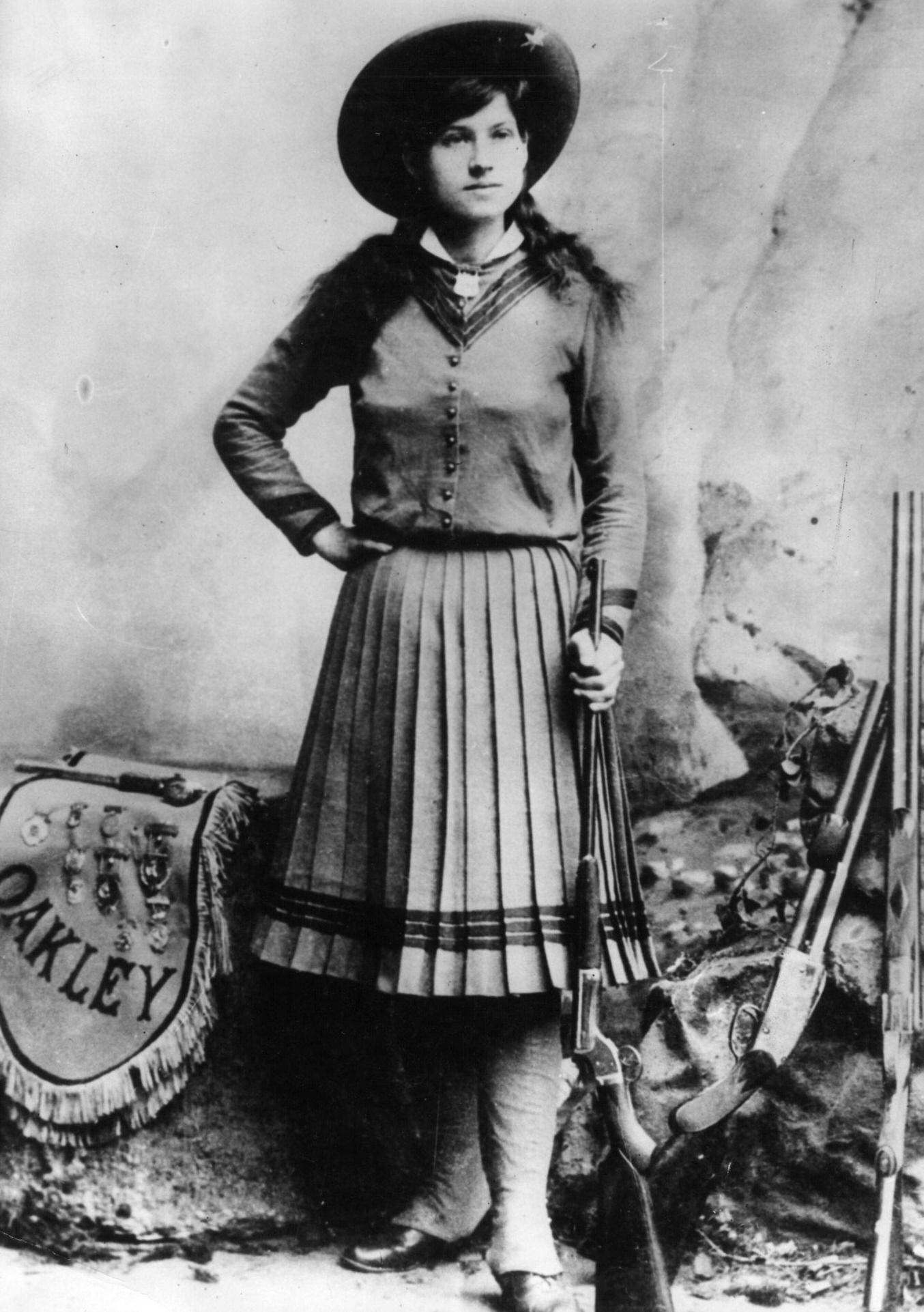 #59 Annie Oakley, 1887: American sharpshooter and rodeo star Annie Oakley (1860 – 1926)
