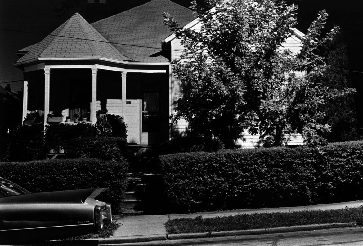 He traveled across the country, capturing the diverse landscape of American life. From small towns to big cities, from wooden houses to brick apartments, each photo reveals a piece of the American experience. The night seems to amplify every detail – the shape of a roof, the curve of a porch railing, the silhouette of a tree against the sky. We become more aware of the surroundings, of the quiet hum of life that continues even when the sun goes down.