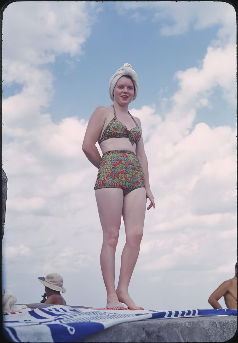 Even with simpler designs, women still wanted to look good at the beach. Colors and patterns helped with that. Polka dots were a big hit. Stripes were also a popular choice. Floral patterns added a touch of femininity. Because of the war, patriotic colors like red, white, and blue were also common.